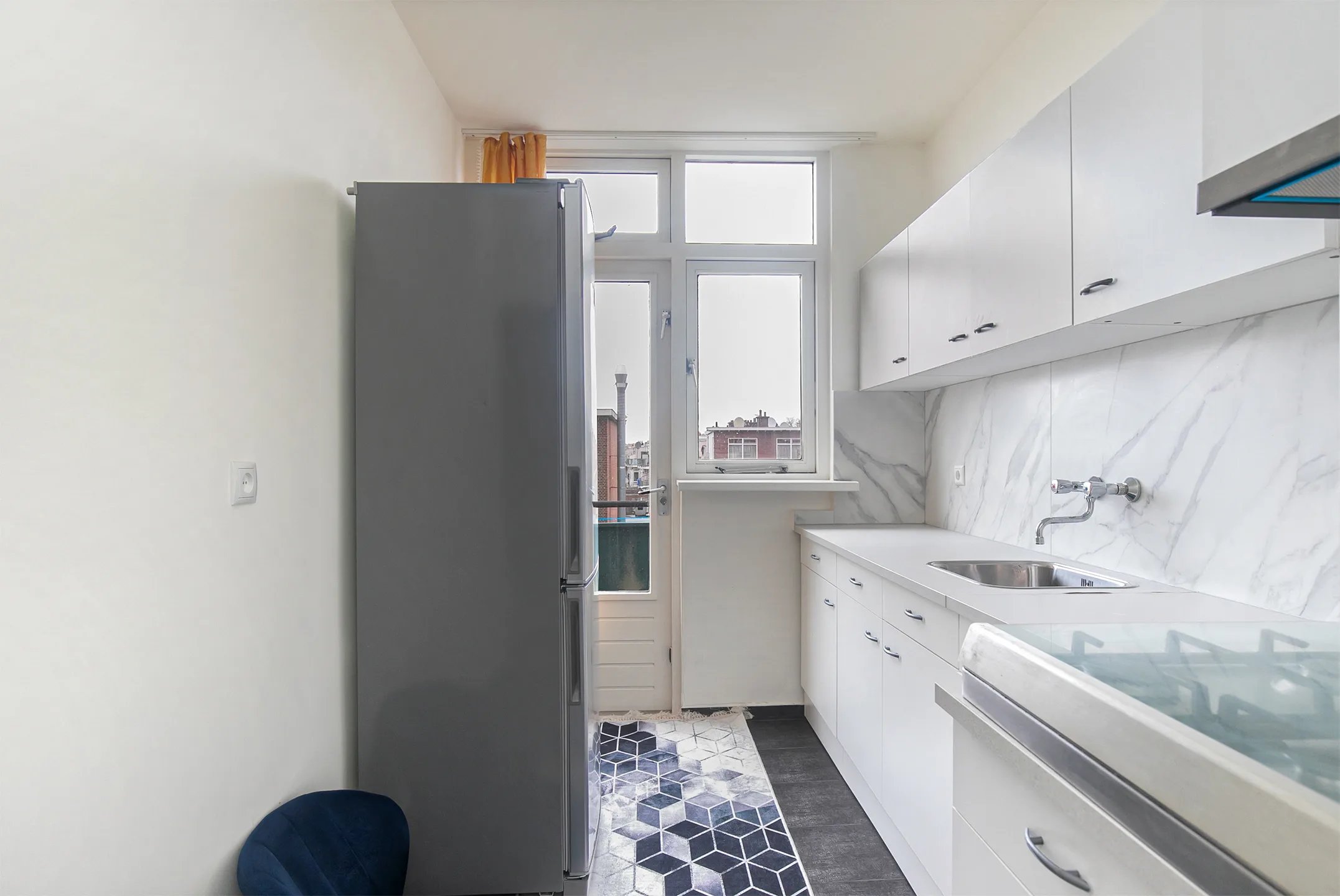 Dit nette appartement is gelegen aan de Hoefkade 935, waar je met maar liefst twee slaapkamers, een luxe badkamer en een balkon absoluut niets te kort komt! Daarnaast is het appartement in goede staat, waardoor je hier zo kunt intrekken! De ligging van het appartement is ideaal te noemen. Winkelen doe je namelijk in winkelcentrum Megastores, boodschappen haal je in de diverse supermarkten, sporters kunnen terecht in sporthal Transvaal en gezellig dineren in vele horecagelegenheden. Kortom, een appartement op een toplocatie! Tevens is de bereikbaarheid uitstekend met het openbare vervoer (bus- en tramhaltes) en uitvalswegen (A4 en A12) nabij gelegen. Appartement Het gebouw is middels een centrale entree te betreden. Je komt binnen in een hal en verder is middels een vaste trap een overloop te betreden. Op de overloop ligt een houten vloer en vind je lichte wanden. De overloop leidt naar drie slaapkamers, een separaat toilet, een badkamer, een keuken en een woonkamer. De knusse woonkamer biedt veel natuurlijk daglicht inval dankzij de hoge raampartijen. Daarnaast kun je hier gezellig samen komen, loungen en dineren. In de lichte keuken tref je donkere vloertegels en een combinatie van marmer look en witte wanden aan. Tevens ben je in de keuken voorzien van een gaskookplaat, een afzuigkap en een koelkast aansluiting. Ook leidt de keuken naar een balkon. De luxe badkamer is voorzien van een wastafel in meubel en een glazen douchecabine. Daarnaast vind je hier grijze vloer- en wandtegels. Momenteel zijn de slaapkamers ingedeeld als een hoofdslaapkamer en een extra opbergruimte. Je kunt de slaapkamers ook uitstekend gebruiken als bijvoorbeeld een kinderkamer, een inloopkast of een werkkamer.